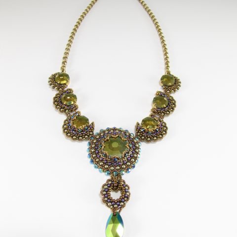 In wild areas of the world with abundant rainfall, one can almost always find some variety type of leafy vine winding along the ground, creeping up neighboring bushes or spiraling up trees toward the sky. Where I live there are native wild grapevines that grow and age for years into thick curling ropes hanging from trees, invasive bittersweet vines that overrun and take down small trees, and petite vines with sweet little flowers that grow along the ground. There are few things as beautiful to behold as a lush, verdant forest adorned with vines twisting around themselves and other trees. The spiraling patterns they make and their leafy growth were the inspiration for this wrap bracelet. It shares with its inspiration the fractal quality of spirals wrapped around spirals and uses only seed beads to achieve an incredibly lush yet wearable look. You can make a single-wrap version of the bracelet or wear the thrice-wrapped version as a necklace!